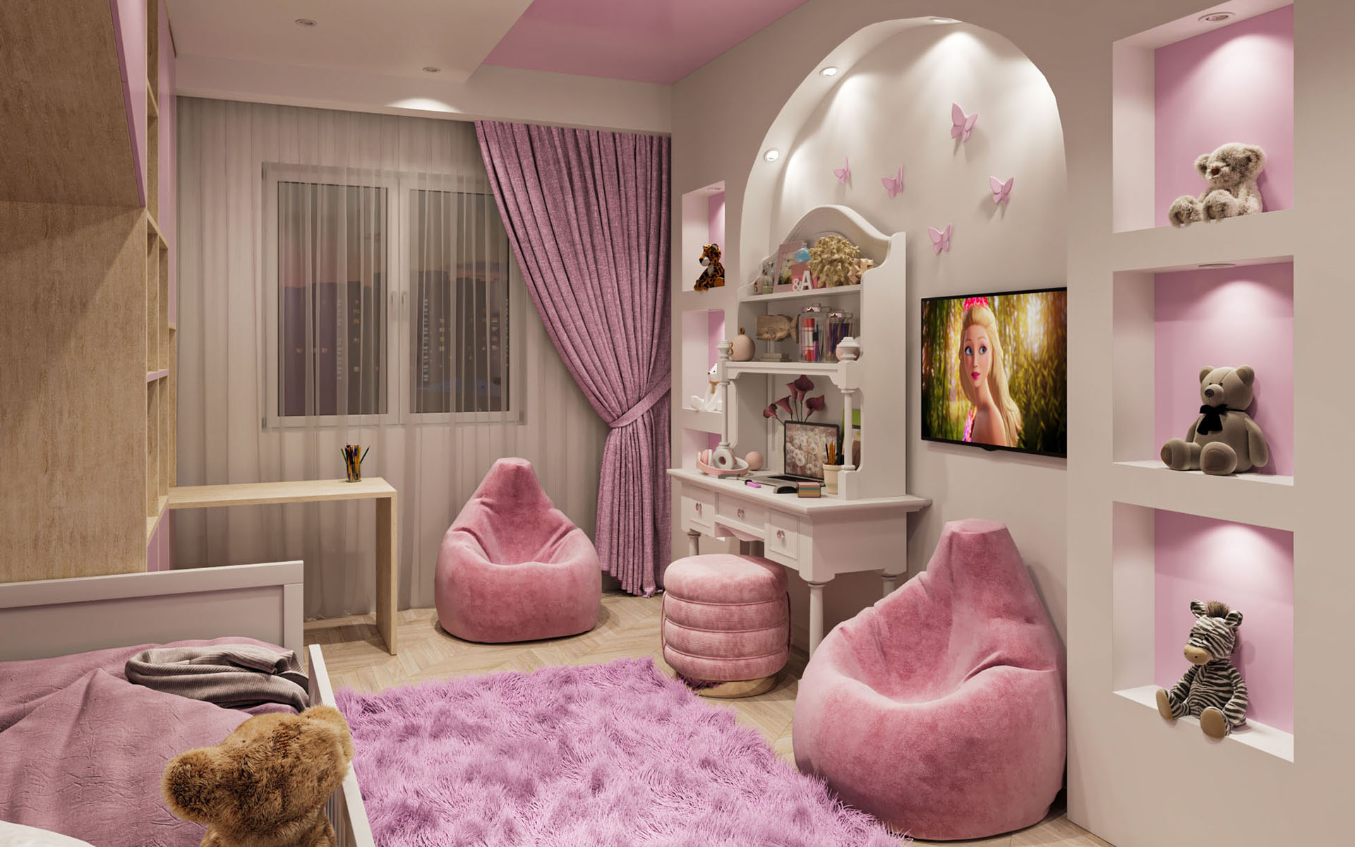 Детская комната — это целый мир, поэтому в ее визуализации мы совмещаем функциональность, безопасность и пространство для творчества. Наши изображения помогают родителям убедиться в удобстве планировки и создать для ребенка комнату, в которой будет весело играть и комфортно учиться.
